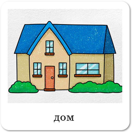 Это дом. Тут папа и мама. Папа музыкант. Мама скрипачка. Антон дома. Вот дети. Это стол и стул. Стол тут, а лампа там.