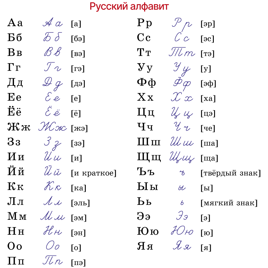 Всего в русском языке 33 буквы, 21 согласная и 10 гласных, два знака, которые не произносятся, это твёрдый и мягкий знаки — ъ и ь.