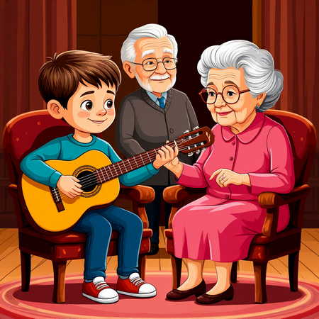 - Это Пётр. Вот его комната. Здесь его пианино. Там его ноты.